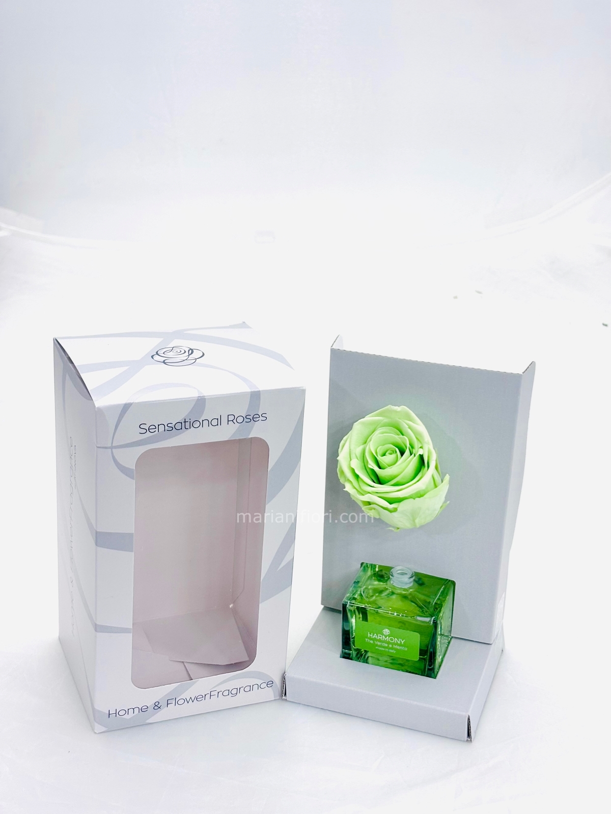 PROFUMATORE E ROSA STABILIZZATA VERDE ESSENZA THE VERDE E MENTA