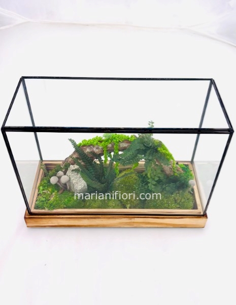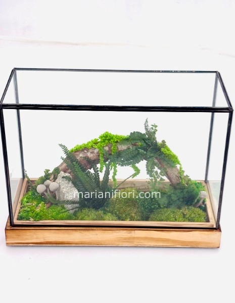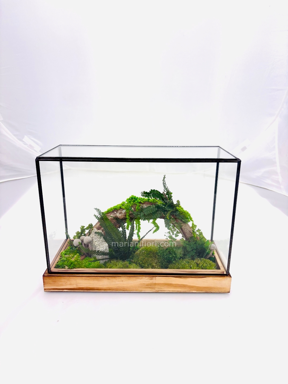 THECA CON PAESAGGIO VEGETALE STABILIZZATO 30X12 H 22 IL TUTTO VIVE SENZA ACQUA